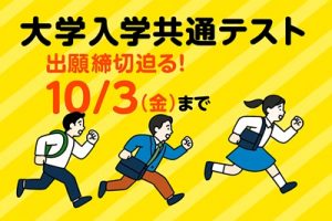 大学入学共通テスト,出願締切は今週の金曜,10/3に迫っています。