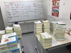 連日ブログで夏期集中講座のご案内をしていますが、ようやく生徒に配布する教材と個人時間割のセットが完成しました!