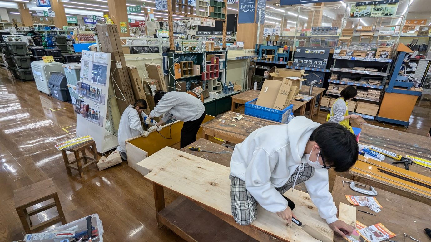 アシスタント4人でコーナンに行き、一日かけて家を作りました。