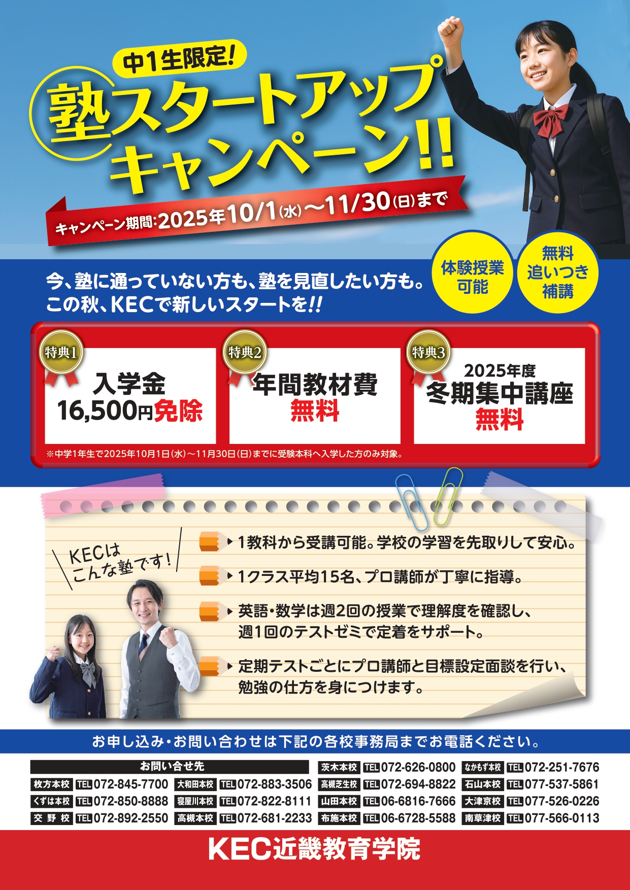 また、現在中1生さんは「塾スタートアップキャンペーン」を実施しております。