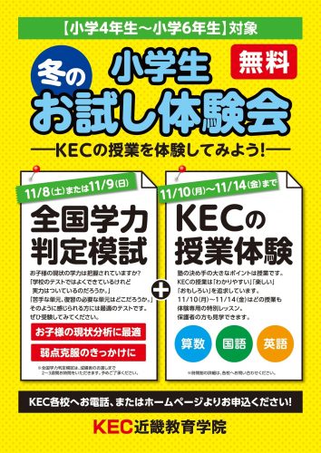 ということで、KECでは、小学生向けに「冬のお試し体験会」を実施します。
