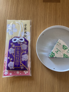 昨年の後半から勉強に目覚めた私は,近所の神社で学業成就のお守りも買いました。