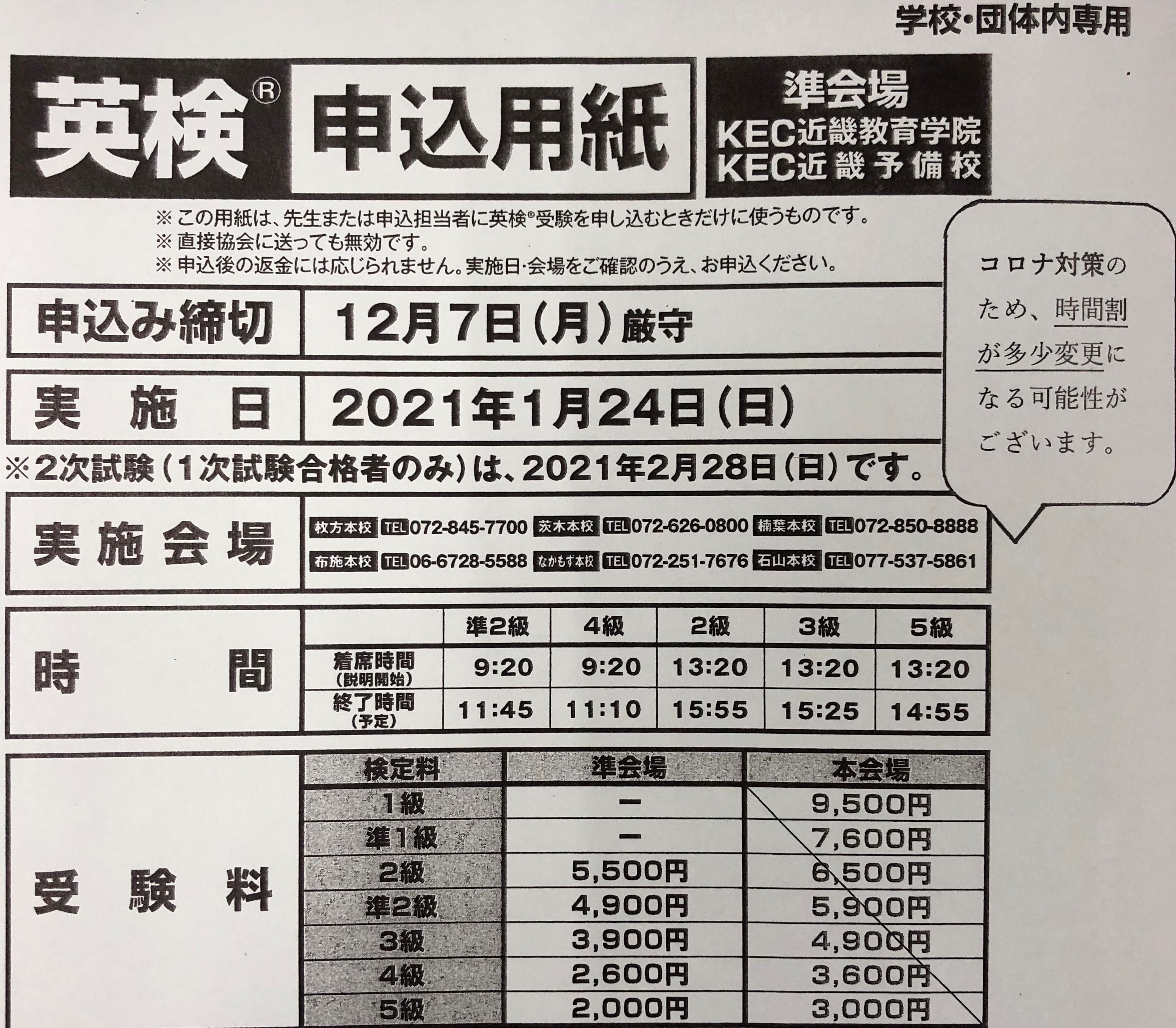 12月7日(月)までが申込期限になっていますので、英検を考えている生徒はお早目に!