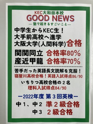 ということで、タイトルにもある通り、KEC石山本校から久しぶりのGood Newsです!