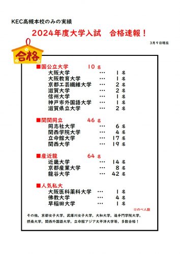 こんにちは。KECの塾・予備校部門,高槻本校の数学・理科担当の川渕です。